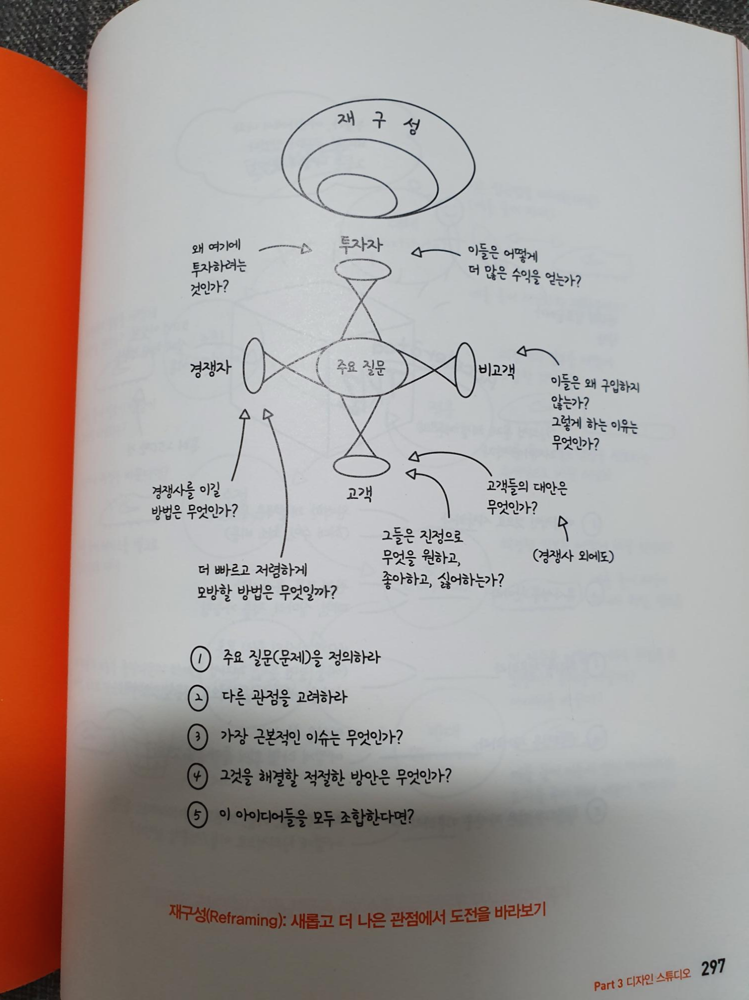 이 책에서 좋았던 부분 중의 하나는 다양한 흐름도 및 프로세스들을 노트에 적은 것처럼 필기해놓은 것들이다. 실제 수업시간에 보고 들은 내용들을 노트에 적은 것처럼 나와 있는데, 실제로 이 책을 보면서 내가 공부하고 있다는 느낌이 들고는 했다. 그래서 나는 이 책을 보면서 단순히 책이라는 생각보다는 혁신적인 생각들에 관한 저자의 생각을 모두 옮겨 놓은 저자의 노트라는 생각도 들었다. 그래서 이 책의 분량이 많은가도 싶기도 하지만.....
