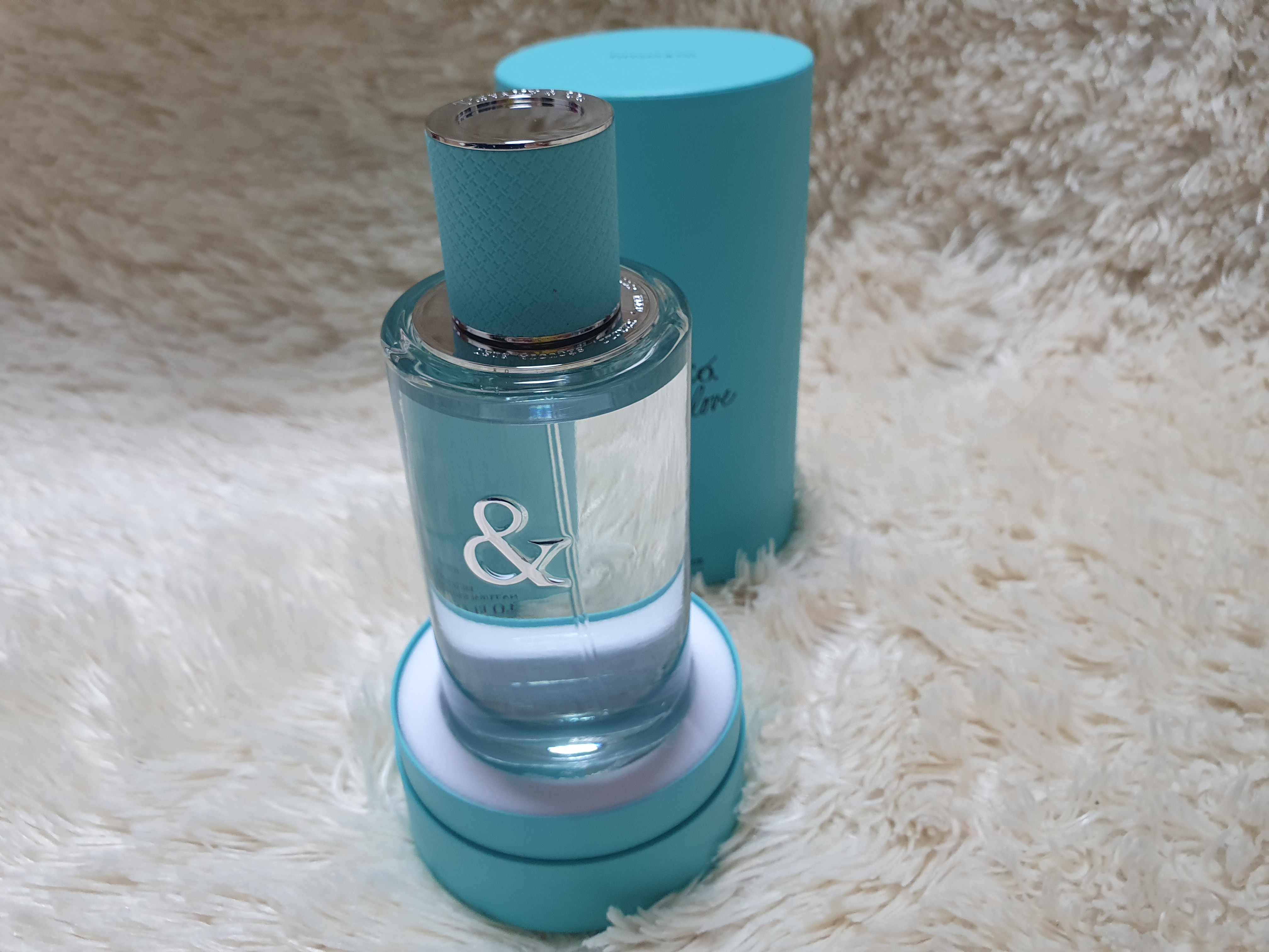 제품의 정식 명칭은 위에 보시는 것처럼 TIFFANY&CO에서 CO부분이 사선으로 그어지고 LOVE라는 말로 대체되어 들어 있는 게 보일 거예요. 그래서 TIFFANY&LOVE , 티파니앤러브라고 향수명이 되어 있습니다.