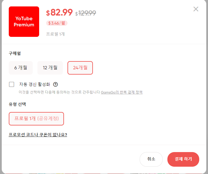 가격이 인상되어 월 1만 4,900원을 내면서 유튜브 프리미엄을 사용하기에는 너무 힘든 상황인데요. 이런 힘든 상황에서 좋은 상품이 있으니 그건 바로 겜스고라는 OTT 공유 플랫폼입니다.