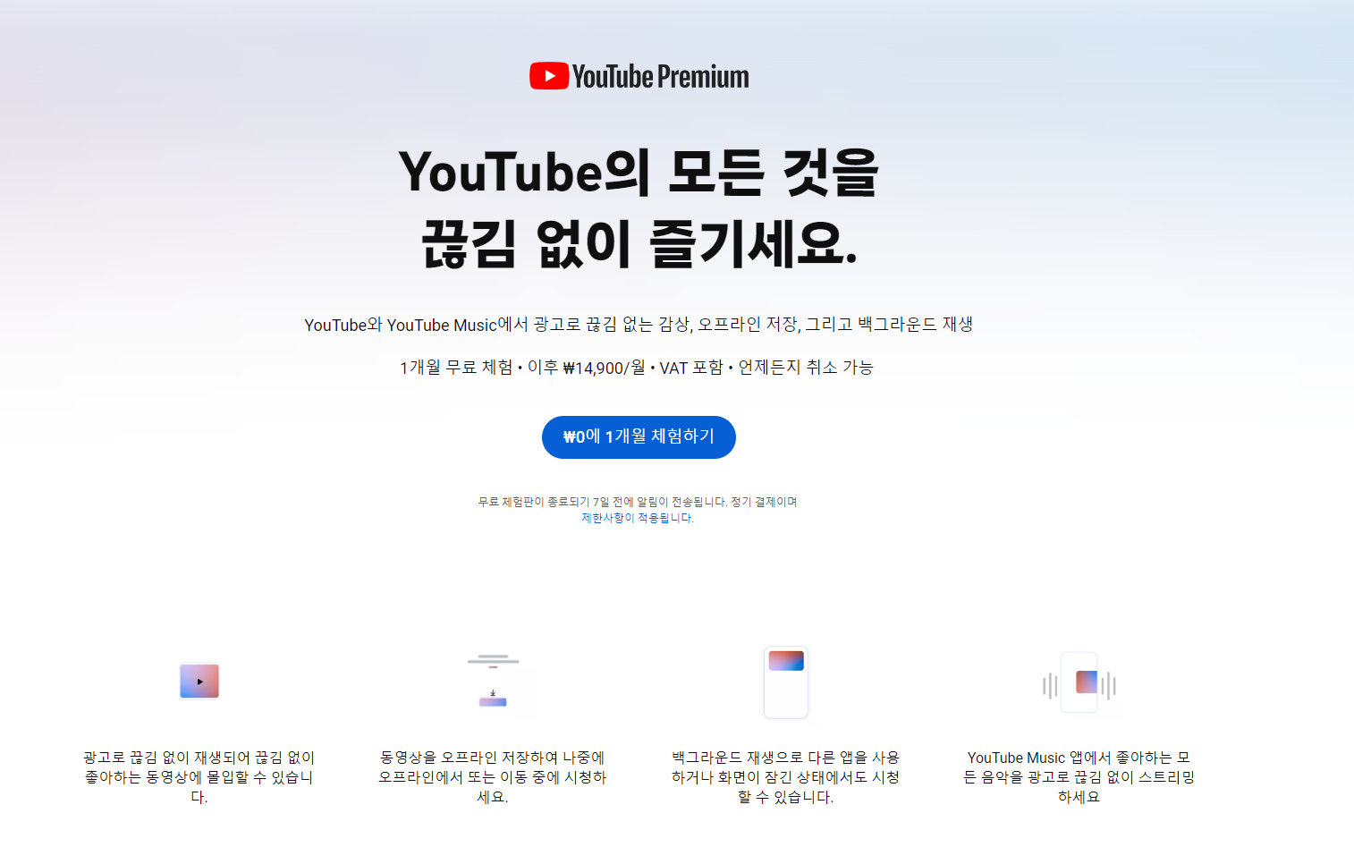 유튜브 프리미엄을 사용하면 모든 동영상을 광고 없이 시청할 수 있어요!