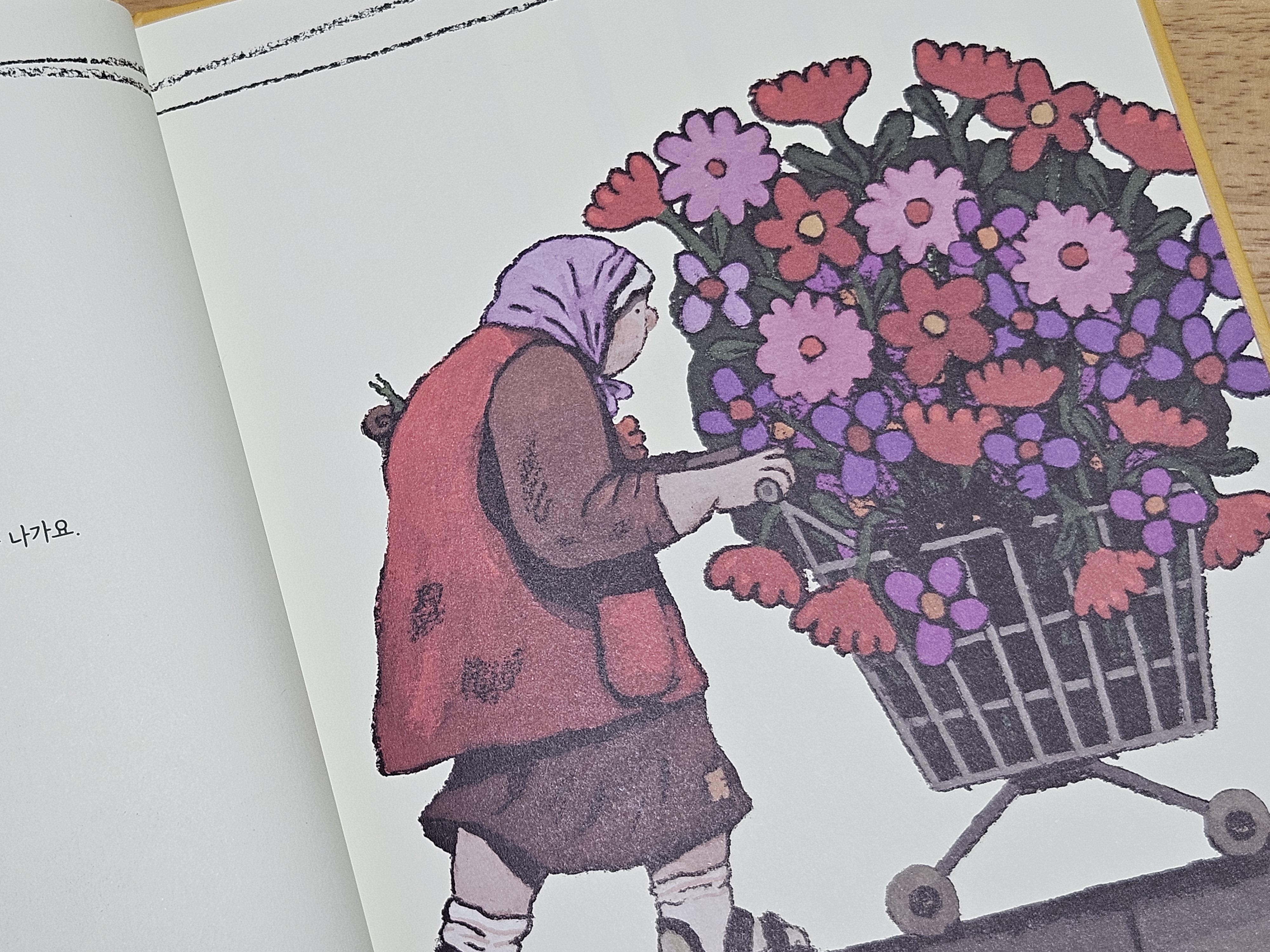할머니는 날마다 같은 시간에 수레에 꽃을 한가득 싣고 산책을 나가요